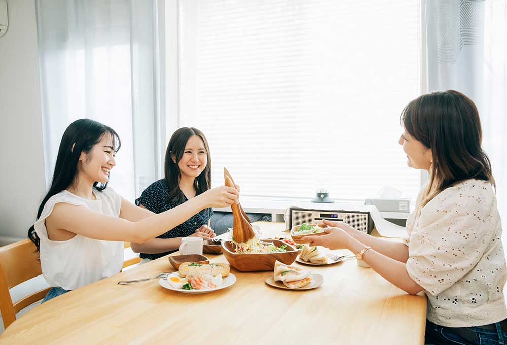 食事やお掃除などの生活支援はもちろん、地域とのつながりを感じながら楽しく過ごせるよう、スタッフがしっかりサポート。
